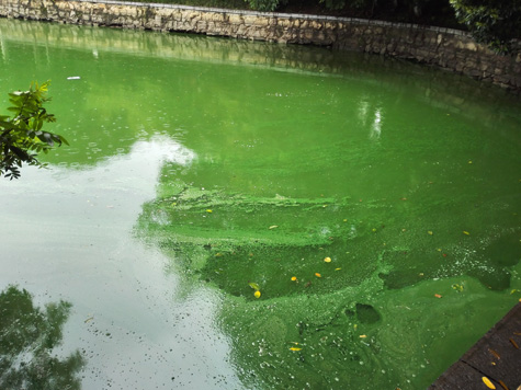 銀河公園水質(zhì)監(jiān)測(cè)指標(biāo)為地表水劣V類,耐污力很強(qiáng)的藍(lán)藻肆意生長,連續(xù)多年藍(lán)藻爆發(fā)成害,水體伴有異臭味,呈現(xiàn)嚴(yán)重富營養(yǎng)化狀況。