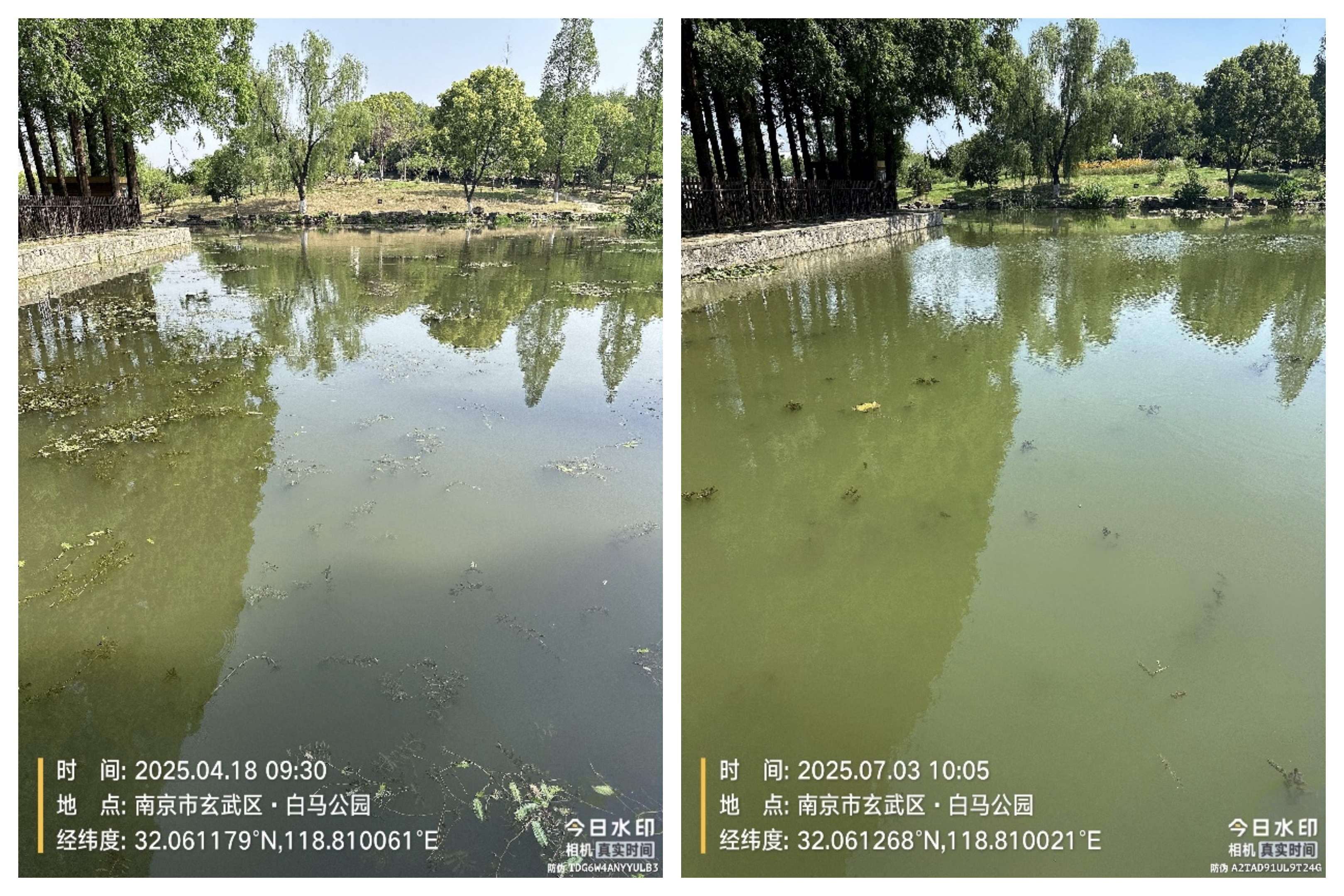 2025年4月,南京蓋亞生物工程有限公司攜自主創(chuàng)新的RhP生態(tài)修復(fù)體系,踏入這片亟待復(fù)蘇的水域,開啟了一場(chǎng)靜水深流的生態(tài)煥新之旅。短短數(shù)月間,科技與自然的協(xié)奏曲,奏響了令人驚嘆的華章!